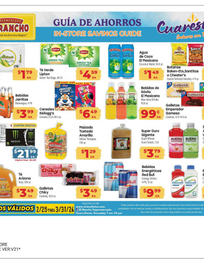 El Rancho Supermercado is a Hispanic grocery chain offering authentic products, fresh produce, and traditional foods. Weekly ads provide discounts on tortillas, meats, and Latin specialties. Visit ElRancho.com.