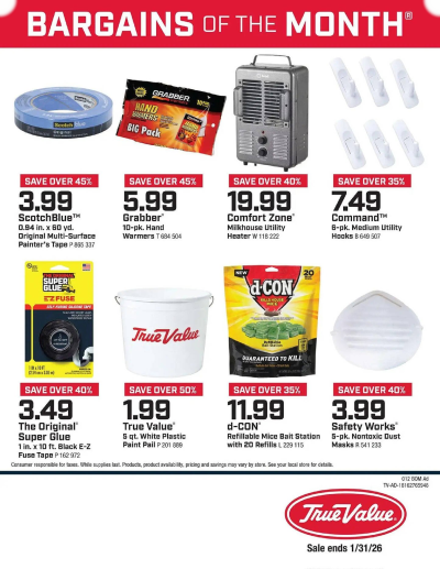 True Value is a hardware store cooperative offering tools, paint, home improvement supplies, and outdoor living essentials. Known for its community-based stores, True Value also runs weekly promotions and seasonal savings events. Shop deals online at TrueValue.com.